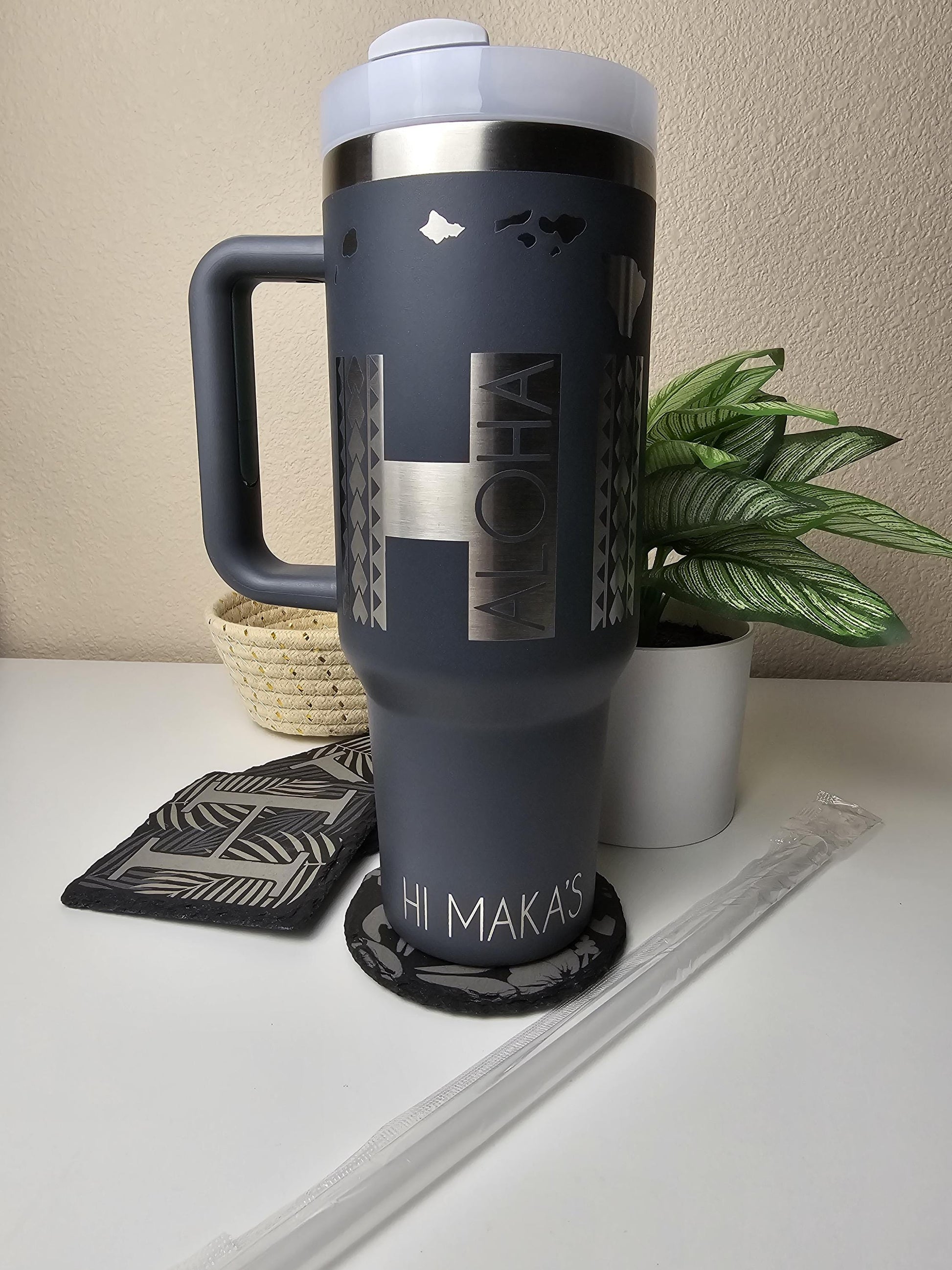 Introducing the HI Aloha engraved tumber! One of our most popular decal designs now laser engraved onto a 40oz tumblers.